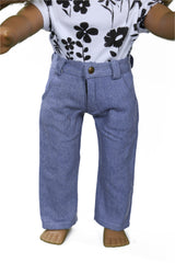 These jeans have great detail. Back and front pockets, belt loops, easy to close snap and Velcro front closure.